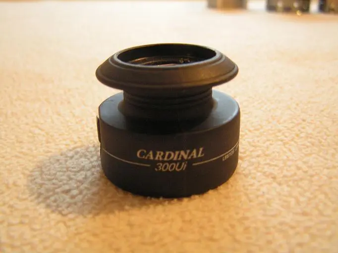 Abu Garcia Cardinal 300Ui -etujarrullisen kelan grafiittinen varapuola.