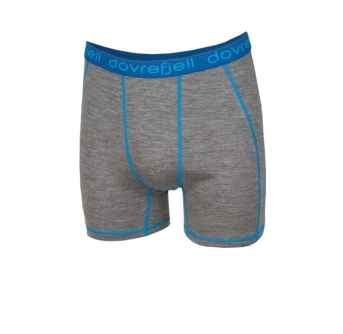 Dovrefjell Classic Merinovilla-alusasujen väri on meleerattu harmaa, turkoosin sinisillä ompelutereillä tehostettuna. Dovrefjell Classic Merinovilla 185 g sisältää 100% merinovillaa, joka poistaa ja eliminoi hajua luonnostaan. Nyt uutena meillä myös bokserit!