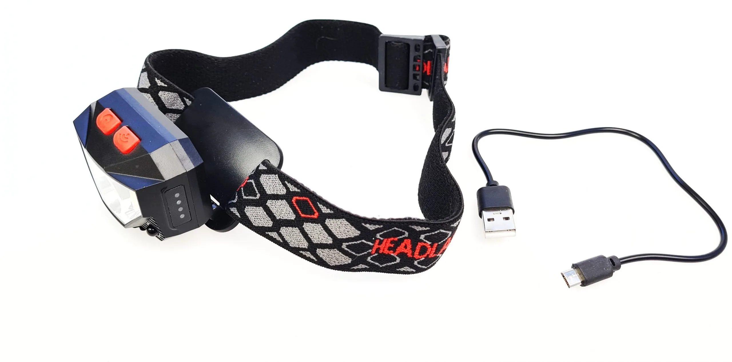This is a lightweight headlamp. Multifuntionel light. Incl red light It has a sensor also for easy use.. Soft headband. You charge it by using the USB port. So you can charge it on your way to the river.. It´s water proof!