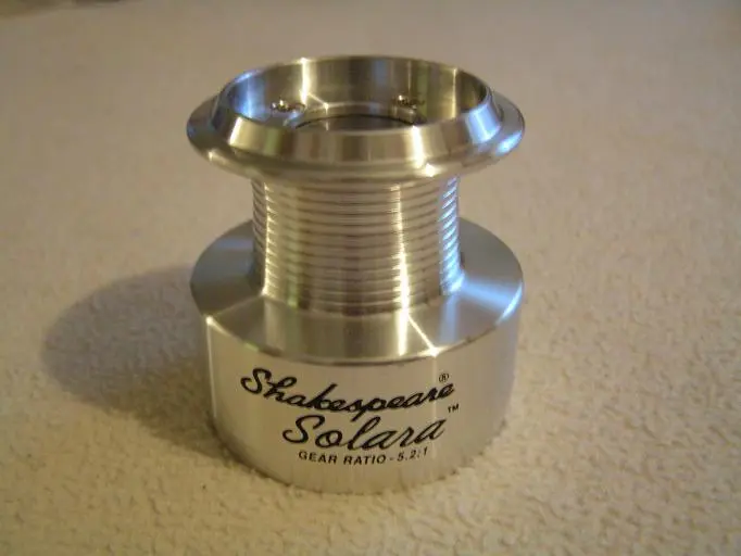 Shakespeare Solara -etujarrullisen kelan alumiininen varapuola. Siimatilavuus:6lb/195yds,8lb/170yds,10lb/120yds.