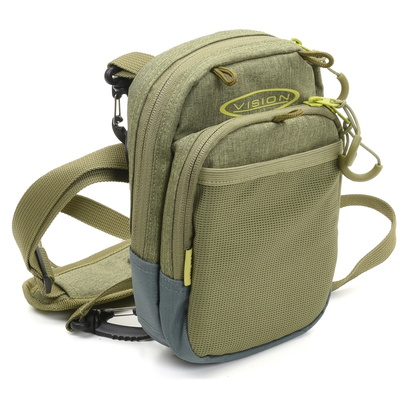 Pienikokoinen, mutta riittävän suuri päivän kärpäsille ja tarvikkeille. Päälokeroon mahtuu yksi iso kärpäslaatikko ja pienempään lokeroon pieni laatikko tai runsaasti kärpässiimoja, johteita ja muita tarvikkeita. Mini Bra -rintaliivejä voidaan käyttää myös kahluuvyönä.Vahva ripstop-materiaaliKaksi vetoketjullista taskuaPieni verkkotaskuYKK® soljet ja vetoketjutD-rengas laskeutumisverkkoa varten kaulanarullaVoidaan käyttää kiinnitettynä kahluuhousuihin tai selkäreppuun