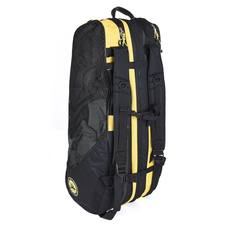 Matkalaukussa on kolme lokeroa; sivussa on iso kumitettu verkko, johon voit pakata märät kahluuvälineet, keskimmäiseen mahtuu 2-3 tavallista sauvaputkea, ja kolmas lokero on yleinen lokero vaatteille ja tarvikkeille. Näiden lisäksi laukussa on litteä sivukokoinen tasku, joka on ihanteellinen laskuverkolle, jonka sisällä on verkkotasku ja ulkopuolella pienempi vetoketjutasku esimerkiksi matkustusasiakirjoille. Laukussa on perinteiset kantokahvat, ja jos sitä ei ole pakattu täysin täyteen, sen voi puristaa hihnojen avulla pienemmäksi. Pidempiä kävelylenkkejä varten siinä on olkahihnat, joten sitä on helppo ja mukava kantaa selässä, ja vetoketjut ovat turvallisesti selkääsi päin turvallisuuden vuoksi. Vision-ominaisuutena painoimme pohjalle joukon erilaisia kaloja, joten aina kun saat yhden kiinni, rastitat laatikon!